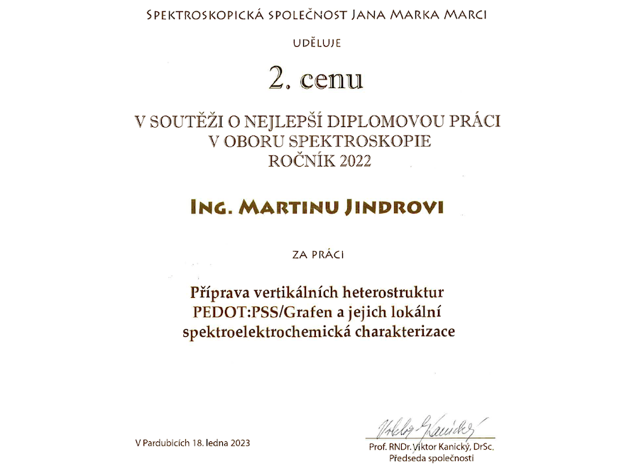 Martin wins the 2nd best master's thesis prize awarded by the Spectroscopic Society of Jan Marcus Marci. Congratulations!
